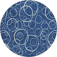 8' Blush Ivory And Copper Round Plaid Washable Indoor Outdoor Area Rug