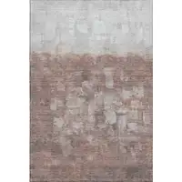 8' Blush Ivory And Pink Ikat Washable Round Rug With UV Protection