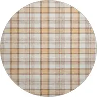 Set an inviting tone in your space with this 8-foot brown and beige abstract geometric washable round rug with uv protection. Ideal for spaces with kids and pets, this rug is stain resistant to help repel dirt and spilled liquids. Built to last, this rug crafted from polyester fibers is known for its durability and long lasting appeal. Rugs are a great way to showcase your style, hide imperfections, warm your home and reduce noise. This larger sized, transitional styled rug is ready to create a focal point or statement piece in your room. 96.00-inch h x 96.00-inch w x 0.39-inch d.