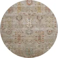 8' Brown And Beige Abstract Washable Round Rug With UV Protection