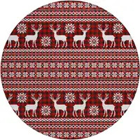 8' Brown And Beige Round Geometric Washable Indoor Outdoor Area Rug