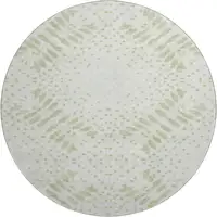 8' Brown And Ivory Geometric Washable Round Rug With UV Protection