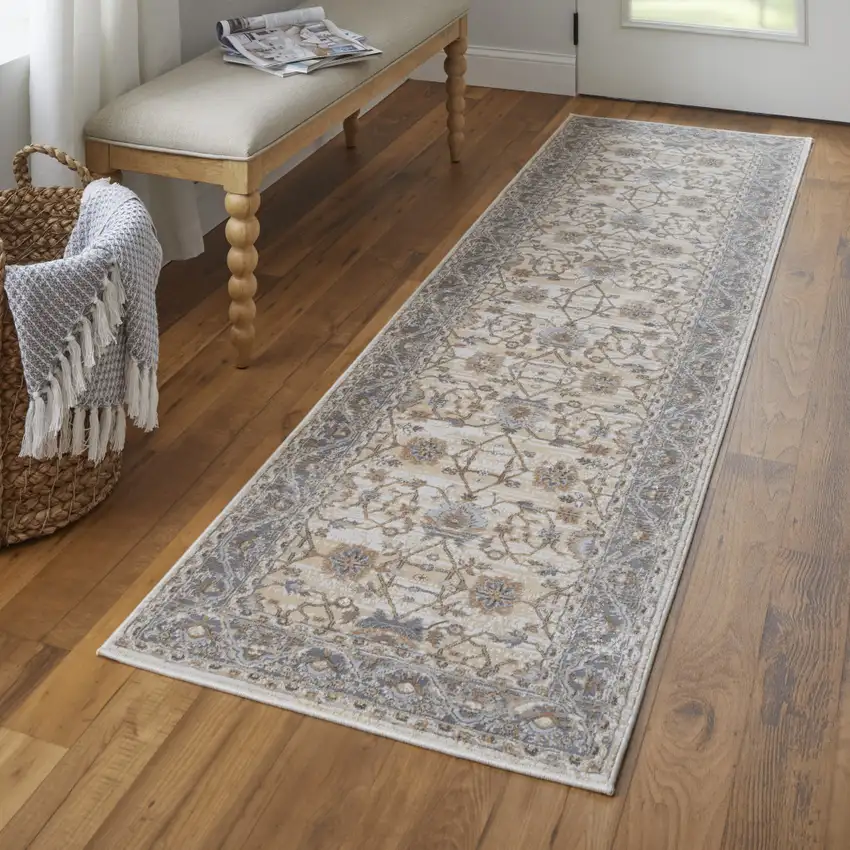 This 8-foot brown and ivory oriental power loom distressed runner rug, is a great way to add warmth to a room. This runner shaped rug features a oriental design in brown and ivory to give it visual interest. A classic shape marries with good looking design for your space place this area rug against a hardwood or tile floor and it will enliven your living space with style and sophistication. 30-inch H x 96-inch W x 0.39-inch D