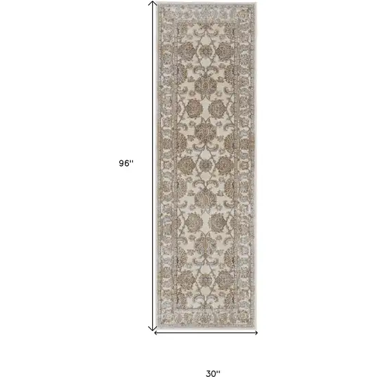 Add great coloration and comfortable texture to your space with this 8-foot brown and ivory oriental power loom distressed runner rug. This runner shaped rug features a oriental design in brown and ivory to give it visual interest. A classic shape marries with good looking design for your space place this area rug against a hardwood or tile floor and it will enliven your living space with style and sophistication. 30-inch H x 96-inch W x 0.39-inch D