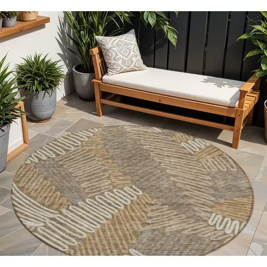 8' Brown And Ivory Round Floral Washable Indoor Outdoor Area Rug