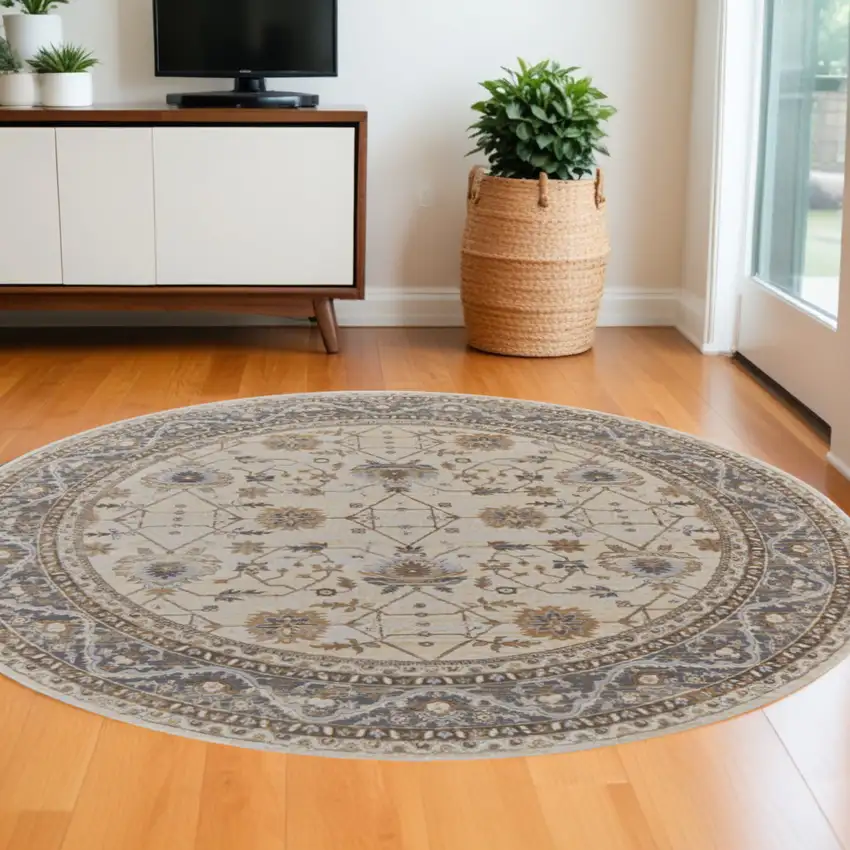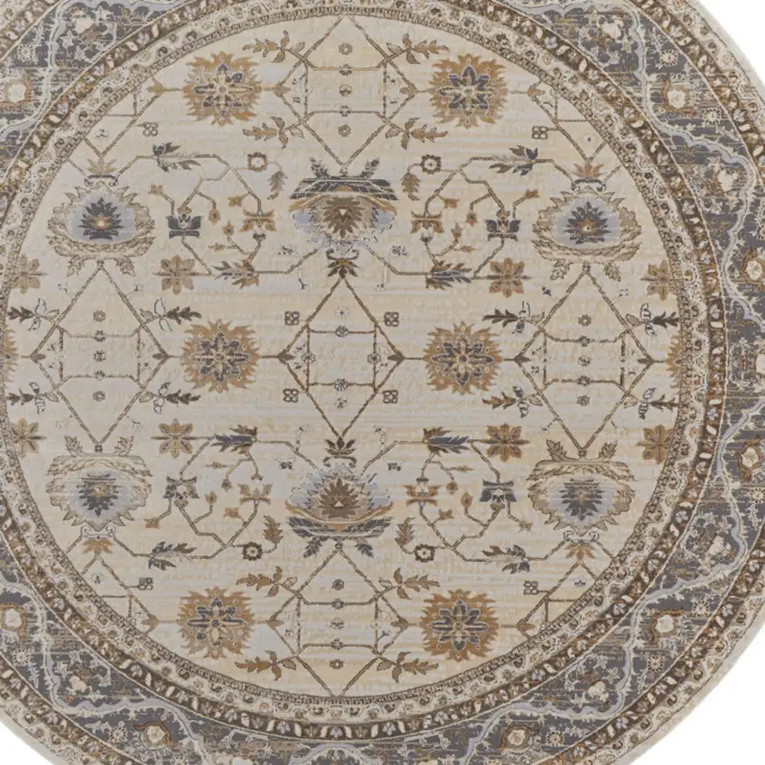 Add some artistry to your room with this 8-foot brown and ivory round oriental power loom distressed area rug. This geometric round shaped rug features a oriental pattern in brown and ivory that combines a good looking print with a unique and updated shape. The mix of shape, color, and design gives this rug refreshing visual interest. Place this area rug against a hardwood or tile floor and it will enliven your living space with style and sophistication. 93-inch H x 93-inch W x 0.39-inch D