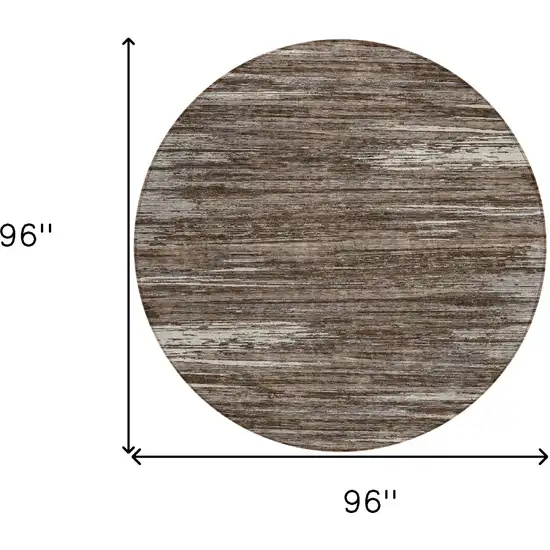 8' Brown And Ivory Round Striped Washable Indoor Outdoor Area Rug