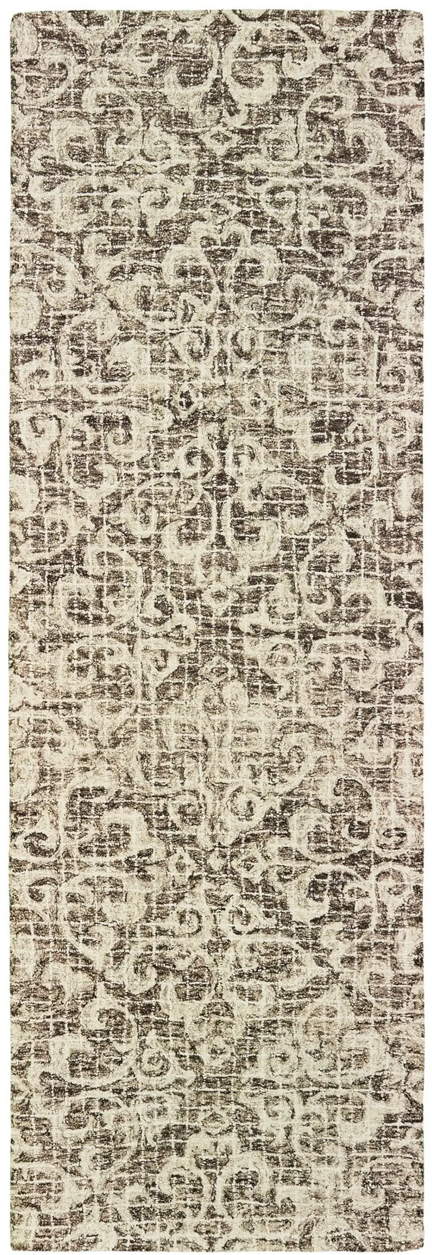 8' Brown And Ivory Wool Floral Hand Tufted Runner Rug