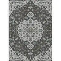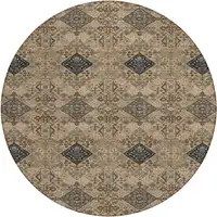 8' Brown And Taupe Round Damask Washable Indoor Outdoor Area Rug