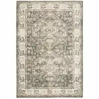 8' Brown Beige And Gray Geometric Washable Round Rug With UV Protection
