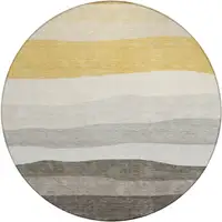 8' Brown Beige And Tan Round Geometric Washable Indoor Outdoor Area Rug
