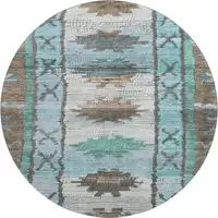 8' Brown Beige And Taupe Floral Washable Round Rug With UV Protection
