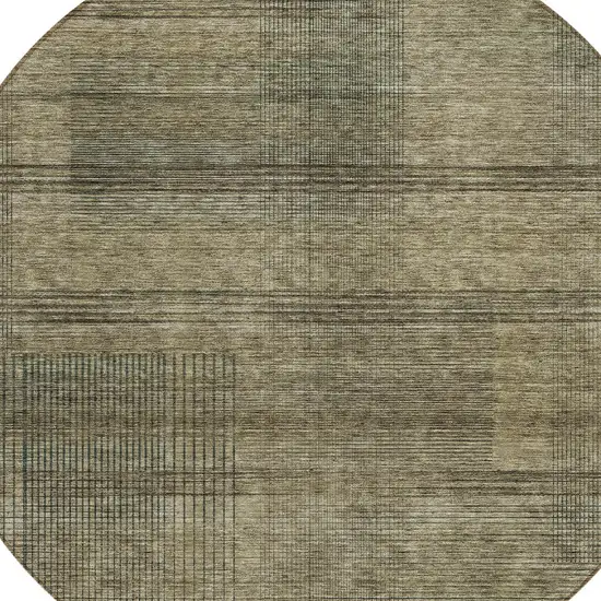 8' Brown Beige And Taupe Round Striped Washable Indoor Outdoor Area Rug