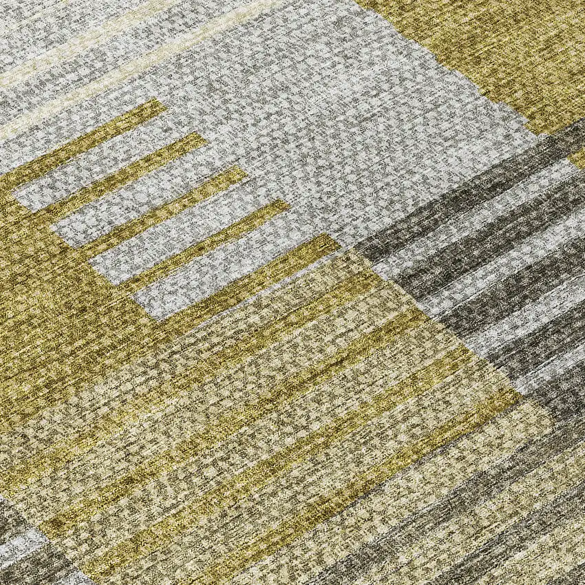 Add great coloration and comfortable texture to your space with this 8-foot brown gold and taupe round striped washable indoor outdoor area rug. This geometric round shaped rug features a striped pattern in brown, gold, and taupe that combines a good looking print with a unique and updated shape. The mix of shape, color, and design gives this rug refreshing visual interest. Ideal for outdoor spaces or high traffic areas with kids and pets, this rug is made from heavy duty polyester that is stain resistant to help repel water, dirt, and stains. Makes a great way to dress up your patio, porch, or poolside, but also works well as a durable and easy to maintain option in the kitchen, family room, or mudroom. 96-inch h x 96-inch w x 0.19-inch d.