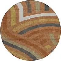 8' Brown Ivory And Gold Round Floral Washable Indoor Outdoor Area Rug