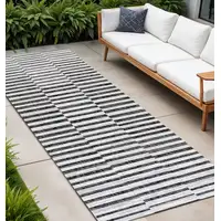 8' Brown Navy Blue And Ivory Floral Indoor Outdoor Runner Rug