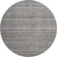 8' Charcoal And Ivory Striped Washable Round Rug With UV Protection