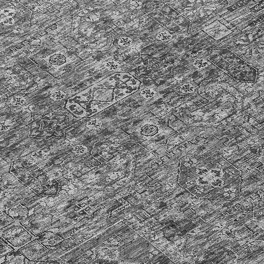 8' Charcoal And Silver Round Floral Washable Indoor Outdoor Area Rug