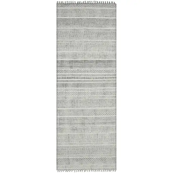 8' Charcoal Geometric Flatweave Handmade Distressed Runner Rug