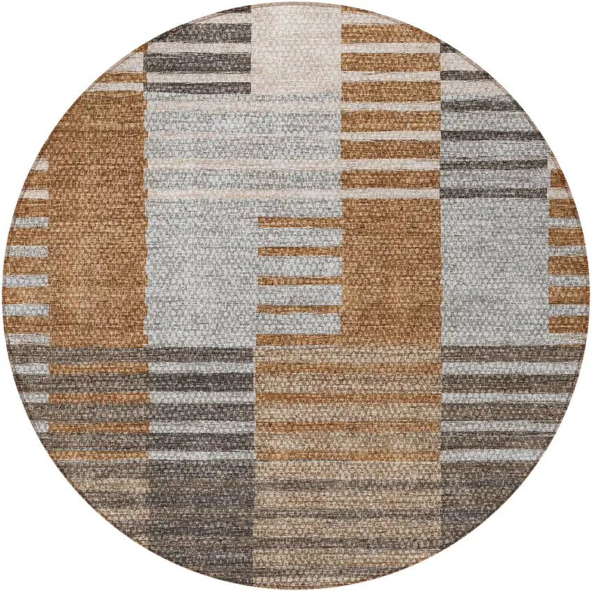 8' Chocolate And Gray Round Striped Washable Indoor Outdoor Area Rug