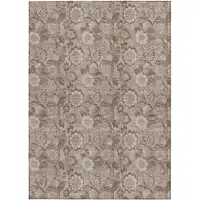 Add great coloration and comfortable texture to your space with this 8-foot chocolate beige and mauve round medallion washable indoor outdoor area rug. This geometric round shaped rug features a medallion pattern in chocolate, beige, and mauve that combines a good looking print with a unique and updated shape. The mix of shape, color, and design gives this rug refreshing visual interest. Ideal for outdoor spaces or high traffic areas with kids and pets, this rug is made from heavy duty polyester that is stain resistant to help repel water, dirt, and stains. Makes a great way to dress up your patio, porch, or poolside, but also works well as a durable and easy to maintain option in the kitchen, family room, or mudroom. 96-inch h x 96-inch w x 0.19-inch d.