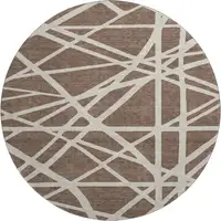 Set an inviting tone in your space with this 8-foot coffee gold and ivory abstract washable round rug with uv protection. Ideal for spaces with kids and pets, this rug is stain resistant to help repel dirt and spilled liquids. Built to last, this rug crafted from polyester fibers is known for its durability and long lasting appeal. Rugs are a great way to showcase your style, hide imperfections, warm your home and reduce noise. This larger sized, contemporary styled rug is ready to create a focal point or statement piece in your room. 96.00-inch h x 96.00-inch w x 0.39-inch d.