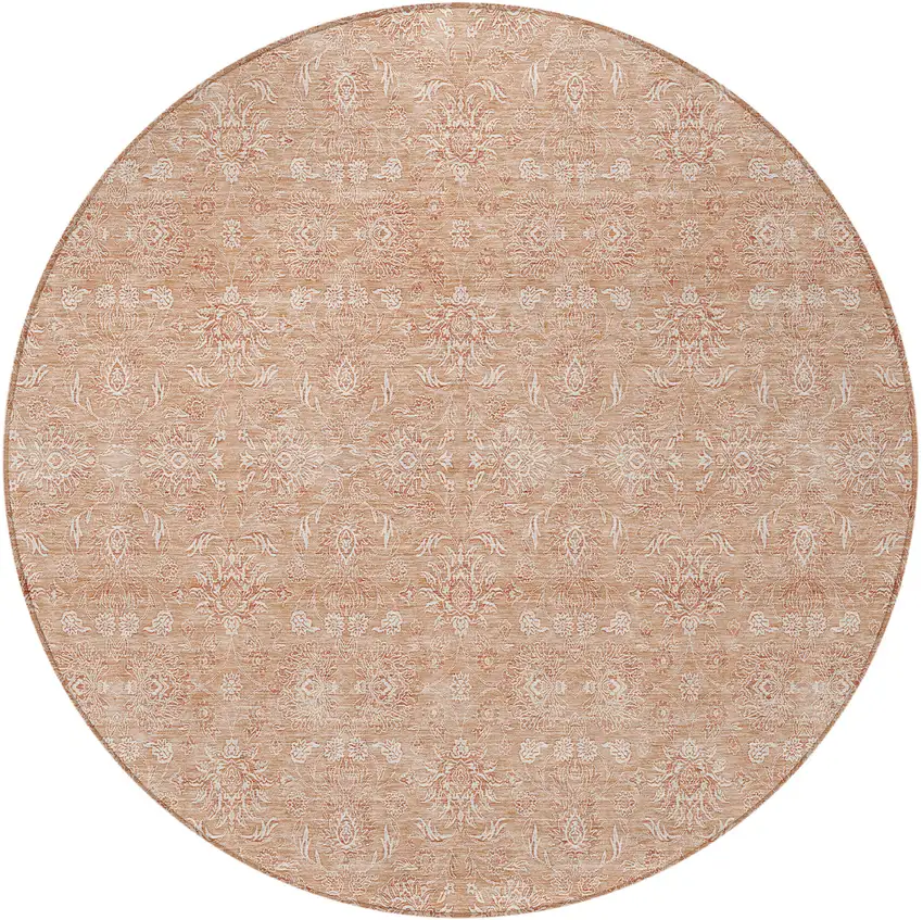 8' Copper And Beige Round Floral Washable Indoor Outdoor Area Rug
