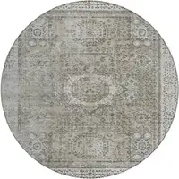 8' Copper And Gray Round Animal Print Washable Indoor Outdoor Area Rug