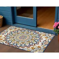 8' Coral And Beige Round Ogee Washable Indoor Outdoor Area Rug