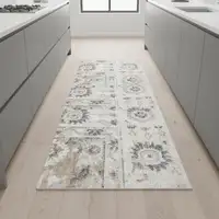 8' Cream And Dark Gray Plaid Indoor Outdoor Runner Rug