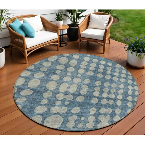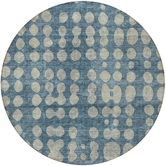8' Denim Blue And Gray Round Abstract Washable Indoor Outdoor Area Rug