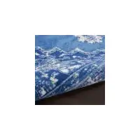 8' Denim Blue And Ivory Abstract Washable Round Rug With UV Protection
