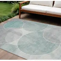 8' Denim Blue And Ivory Round Geometric Washable Indoor Outdoor Area Rug