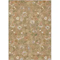 8' Denim Blue And Silver Round Floral Washable Indoor Outdoor Area Rug