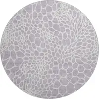 8' Eggplant And Gray Oriental Washable Round Rug With UV Protection