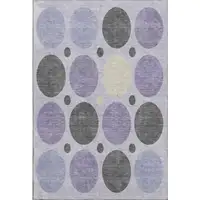 8' Eggplant And Ivory Floral Medallion Washable Round Rug With UV Protection