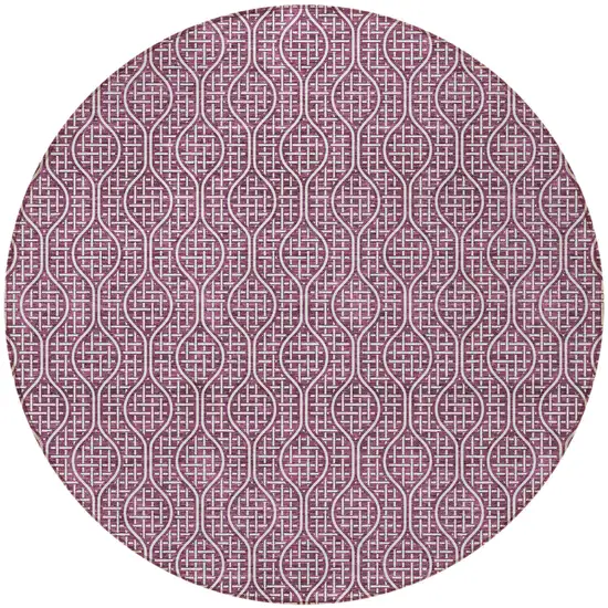 8' Eggplant And Ivory Round Geometric Washable Indoor Outdoor Area Rug