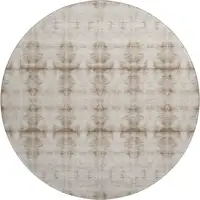 8' Gold And Charcoal Southwestern Washable Round Rug With UV Protection