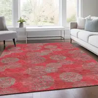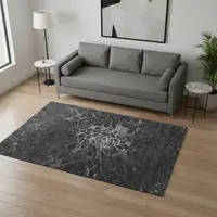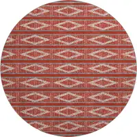 8' Gold And Ivory Geometric Washable Round Rug With UV Protection