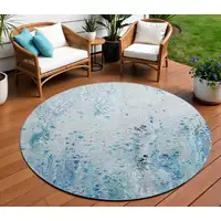 8' Gold And Ivory Round Striped Washable Indoor Outdoor Area Rug