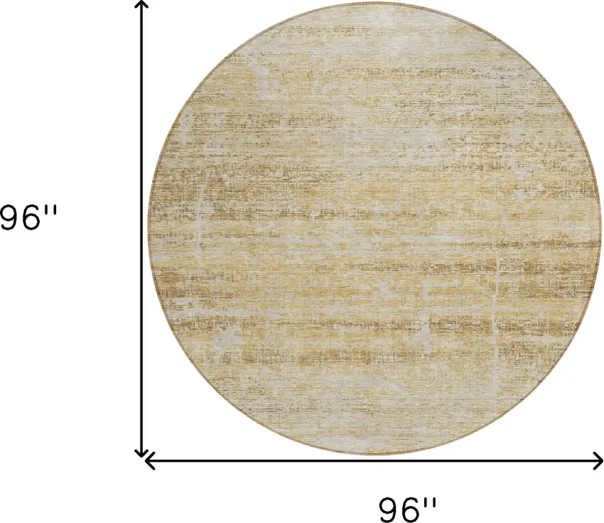 This 8-foot gold beige and wheat round abstract washable indoor outdoor area rug, is a great way to add warmth to a room. This geometric round shaped rug features a abstract pattern in gold, beige, and wheat that combines a good looking print with a unique and updated shape. The mix of shape, color, and design gives this rug refreshing visual interest. Ideal for outdoor spaces or high traffic areas with kids and pets, this rug is made from heavy duty polyester that is stain resistant to help repel water, dirt, and stains. Makes a great way to dress up your patio, porch, or poolside, but also works well as a durable and easy to maintain option in the kitchen, family room, or mudroom. 96-inch h x 96-inch w x 0.19-inch d.