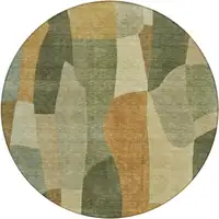 8' Gold Black And Ivory Round Abstract Washable Indoor Outdoor Area Rug
