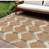 Add great coloration and comfortable texture to your space with this 8-foot gold brown and beige round abstract washable indoor outdoor area rug. This geometric round shaped rug features a abstract pattern in gold, brown, and beige that combines a good looking print with a unique and updated shape. The mix of shape, color, and design gives this rug refreshing visual interest. Ideal for outdoor spaces or high traffic areas with kids and pets, this rug is made from heavy duty polyester that is stain resistant to help repel water, dirt, and stains. Versatile in use, durable, and easy to maintain, this rug is an ideal solution to add a decorative and inviting touch to your indoor or outdoor space. 96-inch h x 96-inch w x 0.19-inch d.