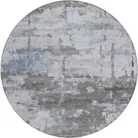 8' Gold Gray And Beige Round Abstract Washable Indoor Outdoor Area Rug