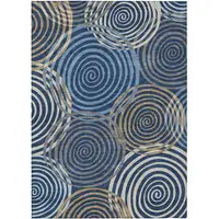 8' Gold Ivory And Blue Round Striped Washable Indoor Outdoor Area Rug