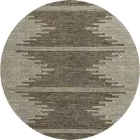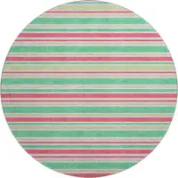 8' Gold Ivory And Gray Striped Washable Round Rug With UV Protection