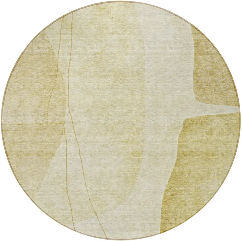 8' Gold Wheat And Beige Round Abstract Washable Indoor Outdoor Area Rug