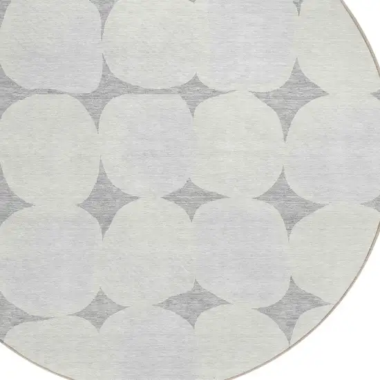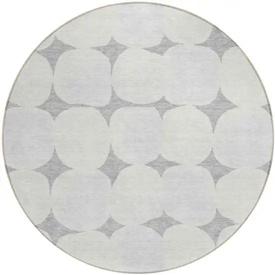 8' Gray And Beige Round Abstract Washable Indoor Outdoor Area Rug