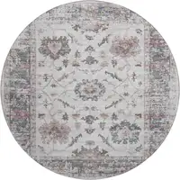 8' Gray And Black Geometric Washable Round Rug With UV Protection