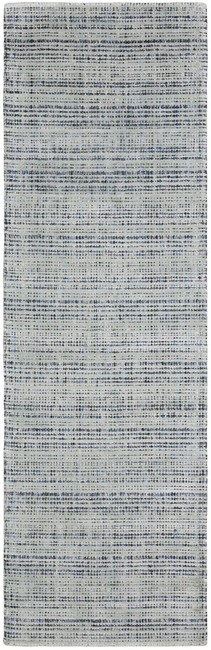 8' Gray And Blue Striped Hand Tufted Runner Rug